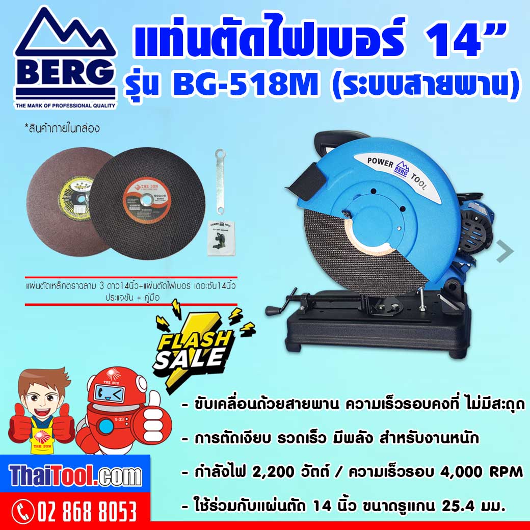 โปรโมชั่น Flash Sale BERG แท่นตัดไฟเบอร์ 14 นิ้ว รุ่น BG-518M (ระบบสายพาน)